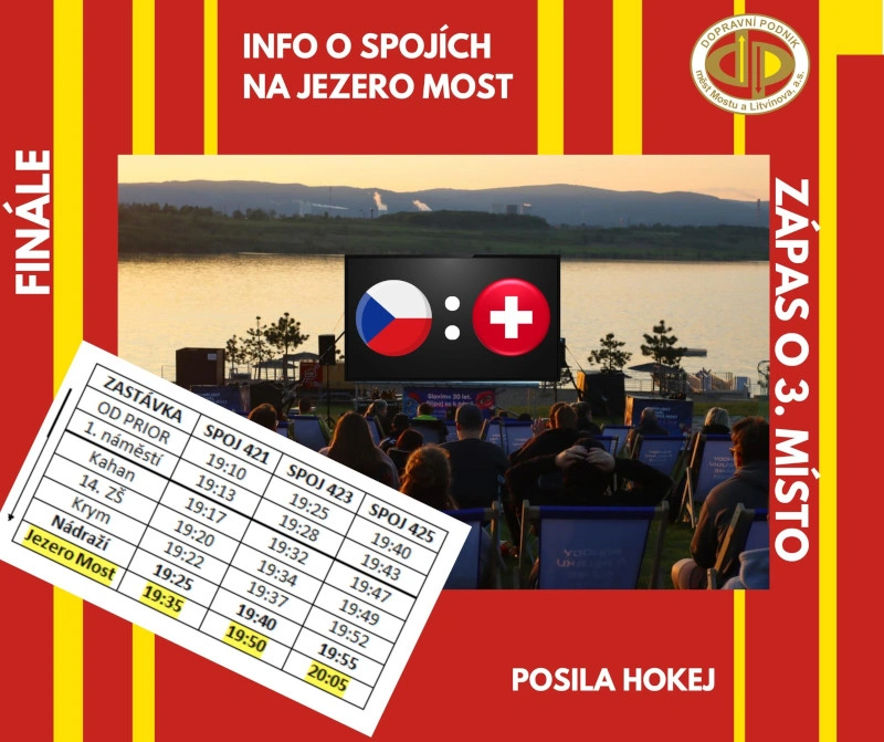 Na finálové utkání od 20:20 lze k přepravě k Jezeru Most využít:
