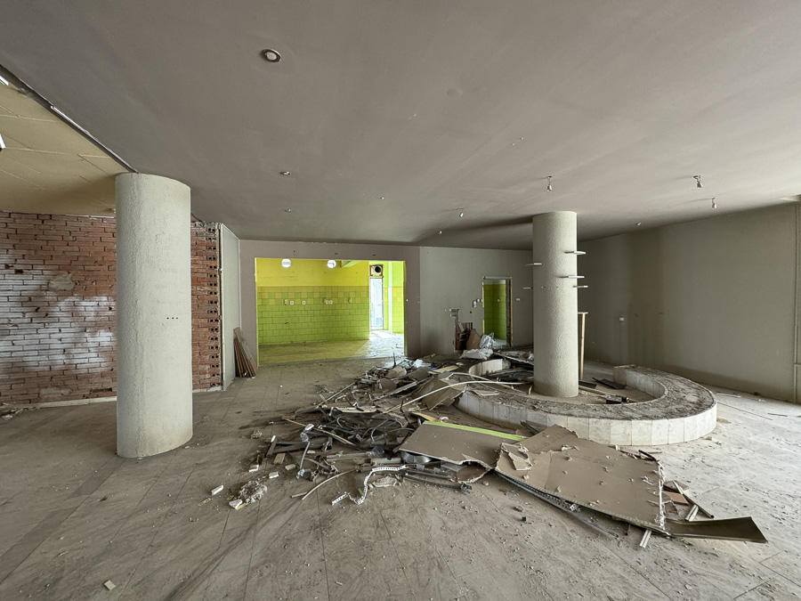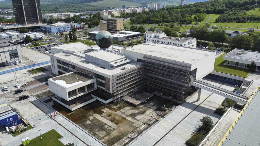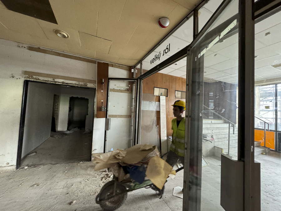 „Teď probíhá kompletní vyčištění vnitřních prostor od nábytku, zařizovacích předmětů a na fasádě už dochází k demontáži obložení. Cílem je stavbu úplně očistit na nosné zdivo, na nosnou konstrukci,“ vysvětluje koordinátor inženýrské činnosti Matěj Benda.
