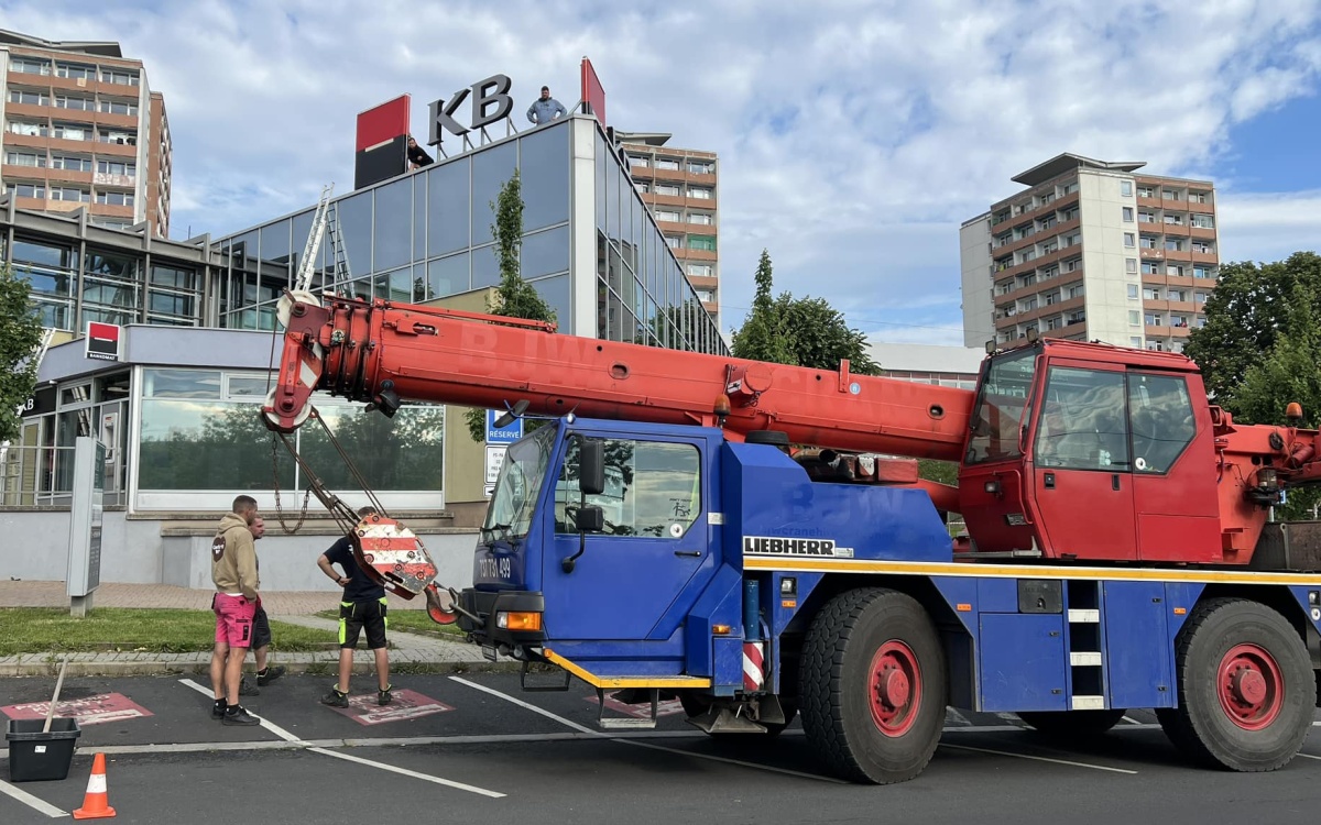 „Důvodem je poškození zátěže střešního loga, které hrozí při poryvu větru zřícením. K sundání a opětovné instalaci této zátěže je nutnost jeřábu. Vyblokována jsou přilehlá šikmá parkovací stání. Přistaven bude na místo i malý kontejner na odvoz suti. Děkujeme za pochopení!" informuje město Most na sociálních sítích.