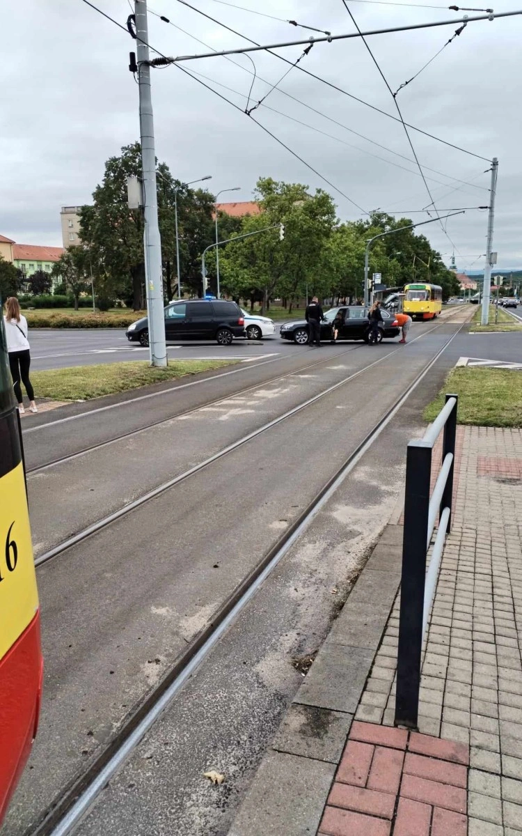 Defekt vozu uprostřed křižovatky na třídě Budovatelů u sportovní haly zastavil i městskou hromadnou dopravu. Foto: čtenář