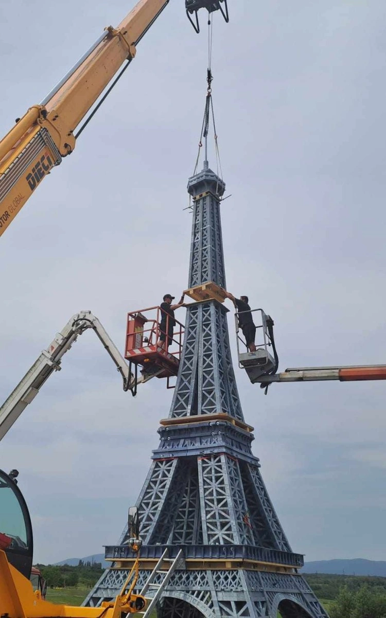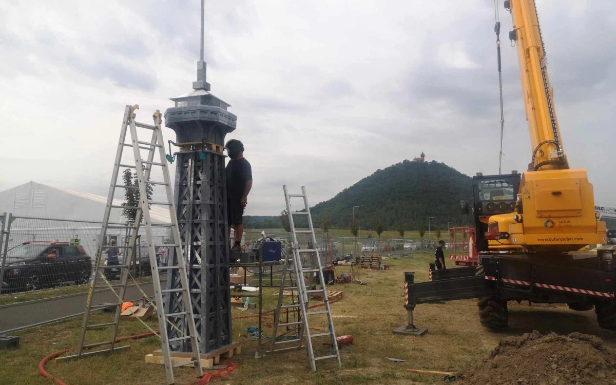 Dva kamiony přivezly jednotlivé díly v pondělí, v pátek mělo být vše hotovo. Nakonec se finišovalo během sobotního odpoledne. „Výstavba nám zabrala zhruba o jeden a půl dne více, což je ale u takovéhoto typu stavby očekávatelné. Je to vlastně naše první Eiffelovka, když děláte něco první na světě, tak se počítá s komplikacemi," podotkl Honza Hřebabecký, CEO a zakladatel společnosti 3DDen s tím, že největší komplikací bylo velmi horké počasí.