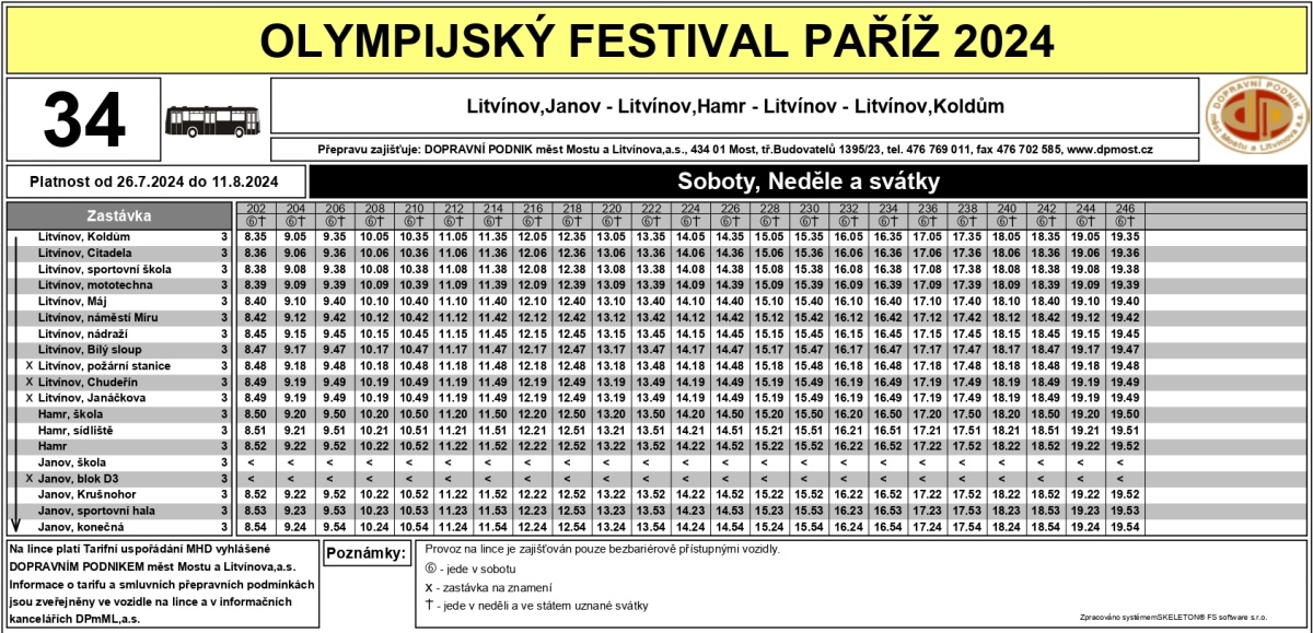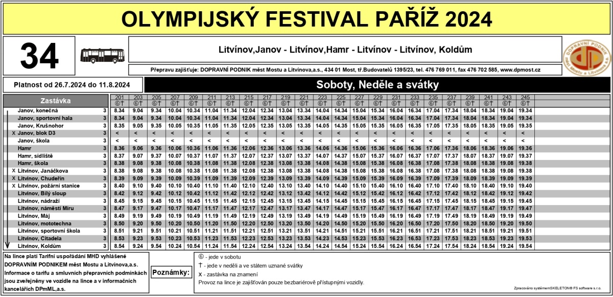 V nepracovní dny (soboty a neděle) bude mezi zastávkami Litvínov, Koldům a Janov, konečná zavedena nová autobusová linka č. 34.