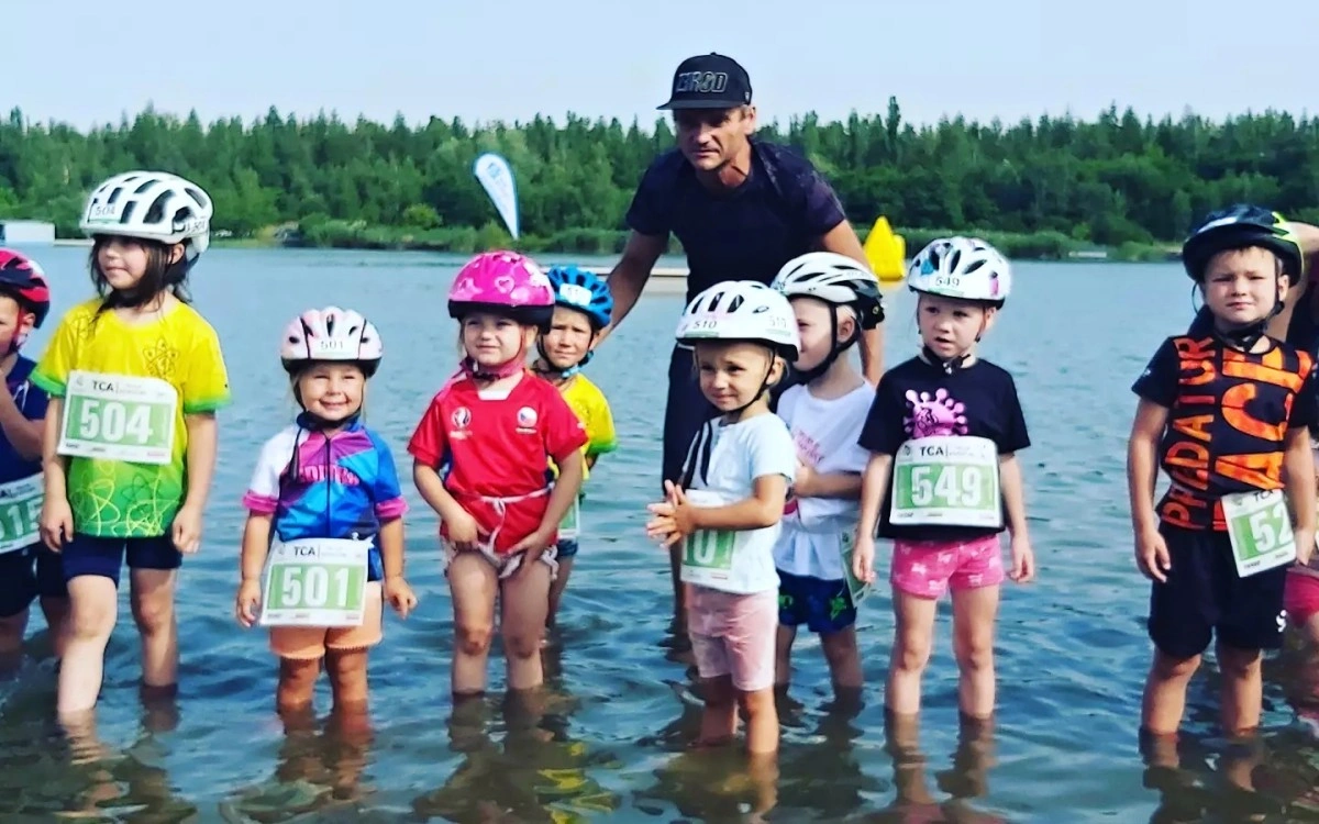 Nikdy není brzy začít s triatlonem. Organizátoři zvou na start i děti, které se sotva naučily chodit. Takto na Matyldě nemladší závodníci čekali na svůj start v roce 2021. A za nimi hlavní organizátor Tomáš Langhammer. Zdroj: FB Tomáš Langhammer, Foto: Edita Kovaříková