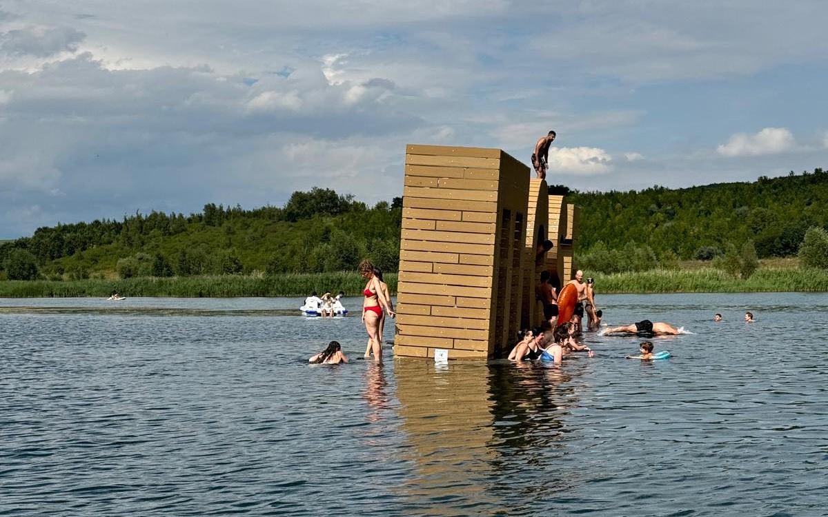 Fotopoint návštěvníci během uplynulé slunečné soboty téměř potopili. K herním hrátkám přitom mají plavci k dispozici několik plovoucích mol na hladině.