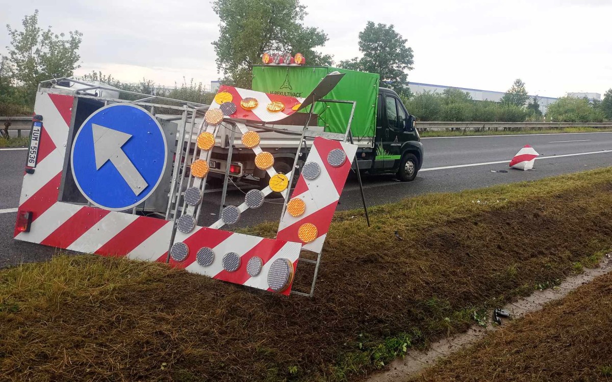 Žatecko – Všechny záchranné složky zasahují na D7 u průmyslové zóny Triangle na úrovni obce Tatinná. Řidič kamionu zde narazil do značky označující začátek úseku, kde pracují silničáři, kteří sekají pomocí mechanizace trávu na okraji silnice.