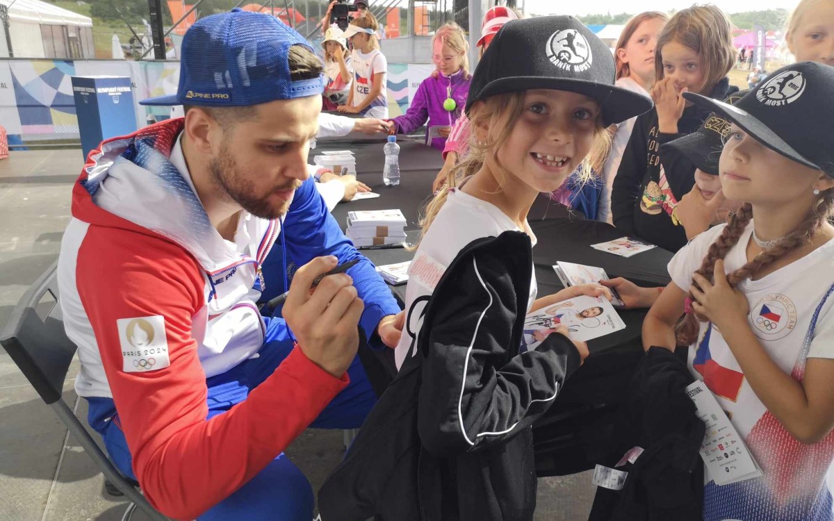 Most – Tým badmintonistů je první, který z českých olympioniků dorazil z Paříže na Olympijský festival k mosteckému jezeru. A spolu s nimi i fleretista Alexander Choupenitch. O tom, jaké to bylo reprezentovat svou zem pod pěti kruhy vyprávěli publiku, před následující autogramiádou.
