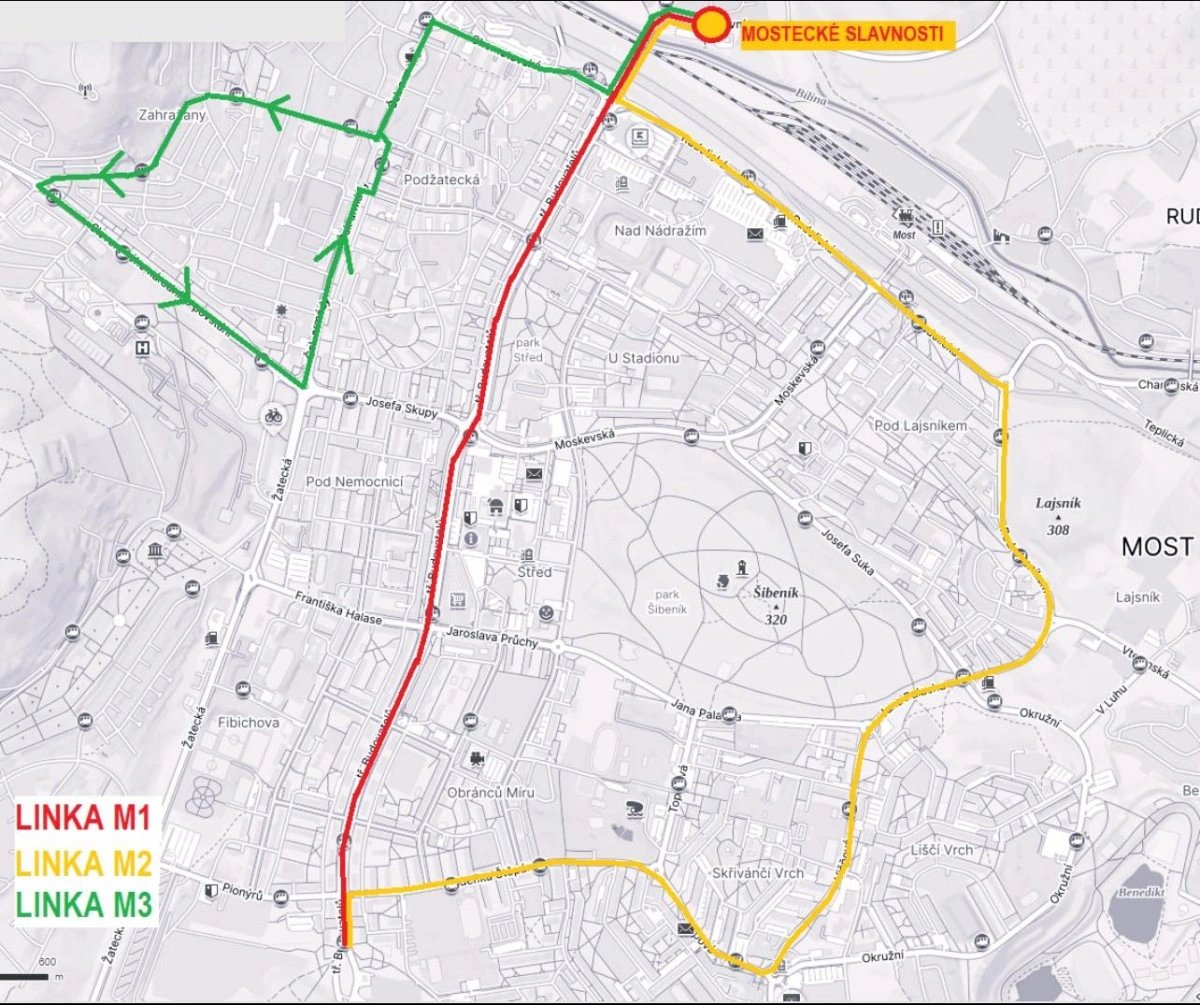 „Budeme rádi, když pro dopravu na Mostecké slavnosti v pátek 13. 9. 2024 a v sobotu 14. 9. 2024 využijete standardní linky MHD nebo tři posilové linky, které jsme ve spolupráci s městem Most připravili.