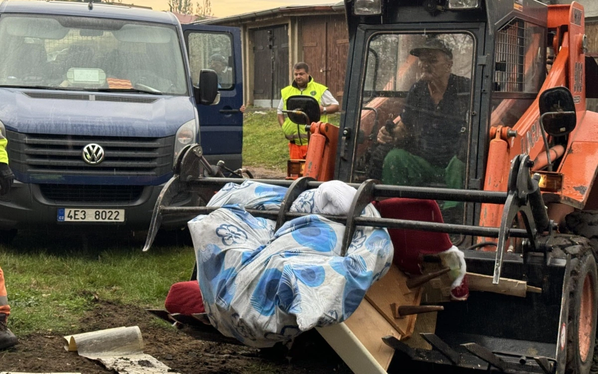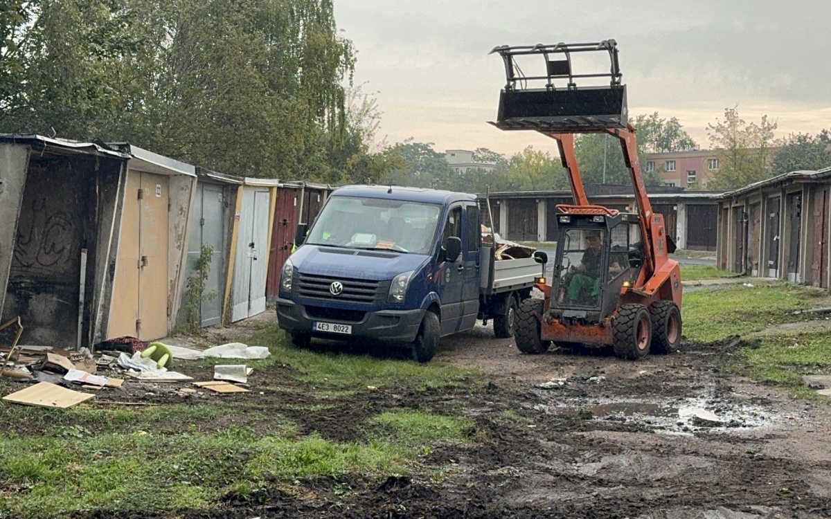 Most – Do likvidace nepořádku v areálu garáží v ulici Pionýrů v Mostě se dnes pustili pracovníci Technických služeb města Mostu. Aby odvozili desítky kilogramů harampádí, ale i přikrývek a dalších věcí, které do prostoru garáží nanosili bezdomovci a narkomani, bylo zapotřebí využít techniku.