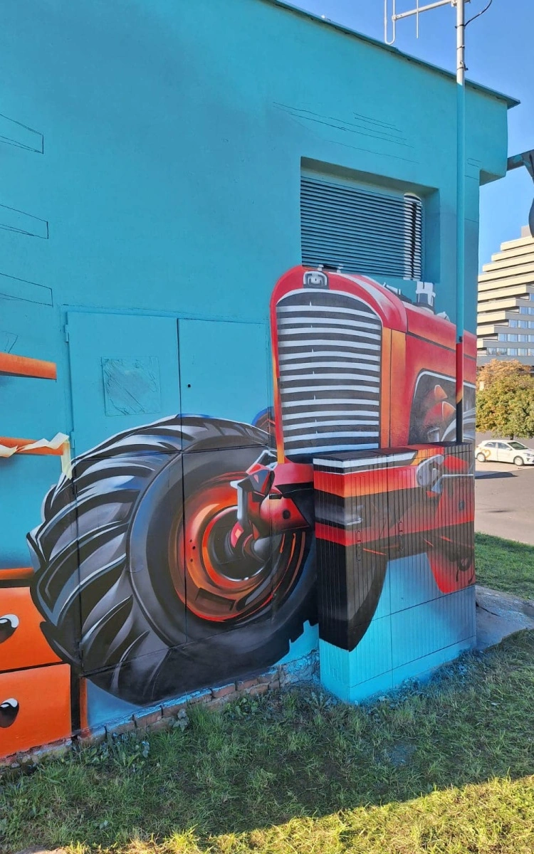 Most – Velký ohlas vyvolalo mezi Mostečany ozdobení trafostanice u Benediktu a také v ulici Jiřího z Poděbrad poblíž prodejny Lidl malbou velkého traktoru. Zvláště tato trafostanice je lidem hodně na očích. Podle ČEZ projdou proměnou i další objekty, pěkné provedení fasády totiž odrazuje od vandalismu.