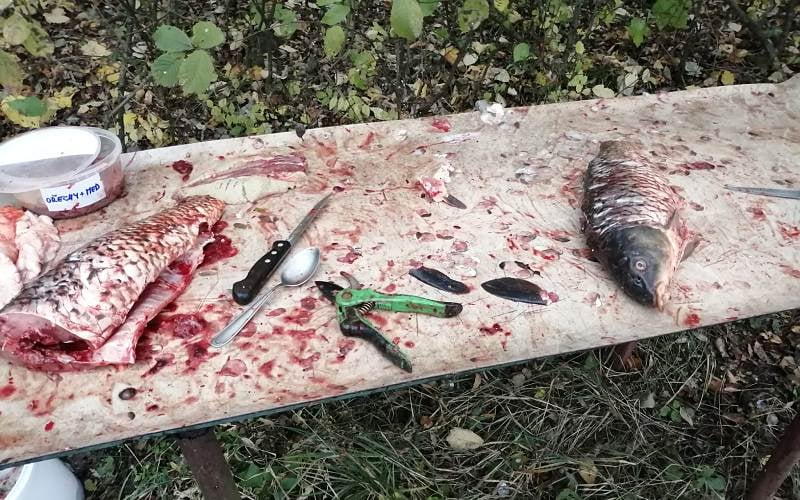„Porušen byl také zákaz porcování ponechaných ryb na lovném místě (i s ohledem na možnou kontrolu RS). Místo popsala RS jako "rybí jatka", vyřezané a nepotřebné části ryb poházeny po okolí (rybář na místě dle povolenky cca týden), takže lze jednoznačně hovořit i o nepořádku na lovném místě," uvedl Český rybářský svaz, z. s., Severočeský územní svaz na sociálních sítích.