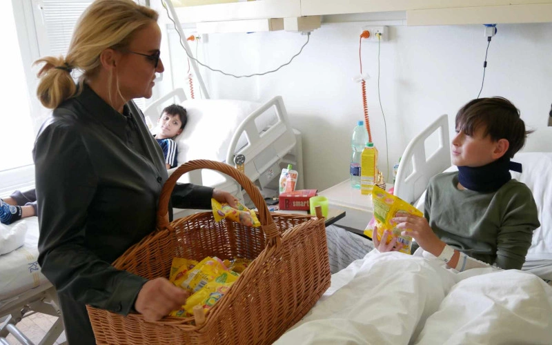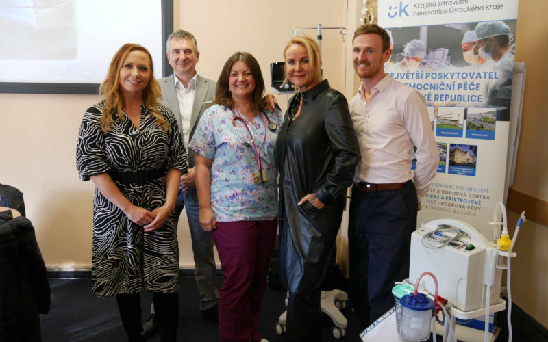 Po krátké prezentaci nových přístrojů se všichni společně vydali potěšit pacienty na dětském oddělení mostecké nemocnice, kterým rozdali něco na zub i něco na hraní. Dětem Vendula Pizingerová popřála hlavně hodně zdraví a aby se brzy vrátili domů.