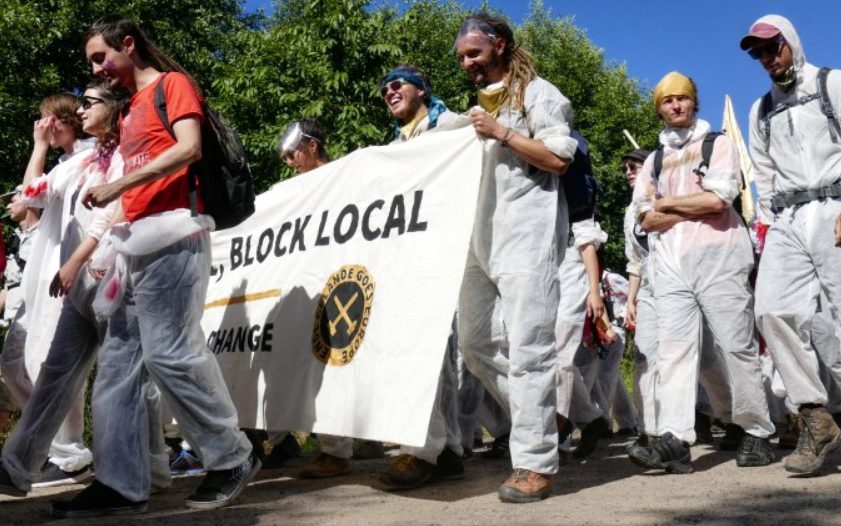 Při demonstraci aktivisté tehdy obsadili rypadlo a někteří se k němu i připoutali. Na místě zasahovaly desítky policistů.