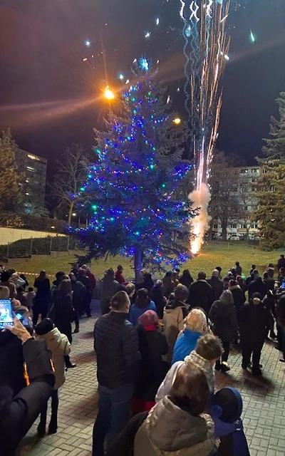 Most – Stovky lidí sledovaly rozsvícení živého vánočního stromu na 4. ZŠ Václava Talicha v Mostě. Nejen rodiče žáků, ale i další lidé z okolí byli přilákáni písněmi sboru a hlavně ohňostrojem, který byl součástí samotného rozsvícení.