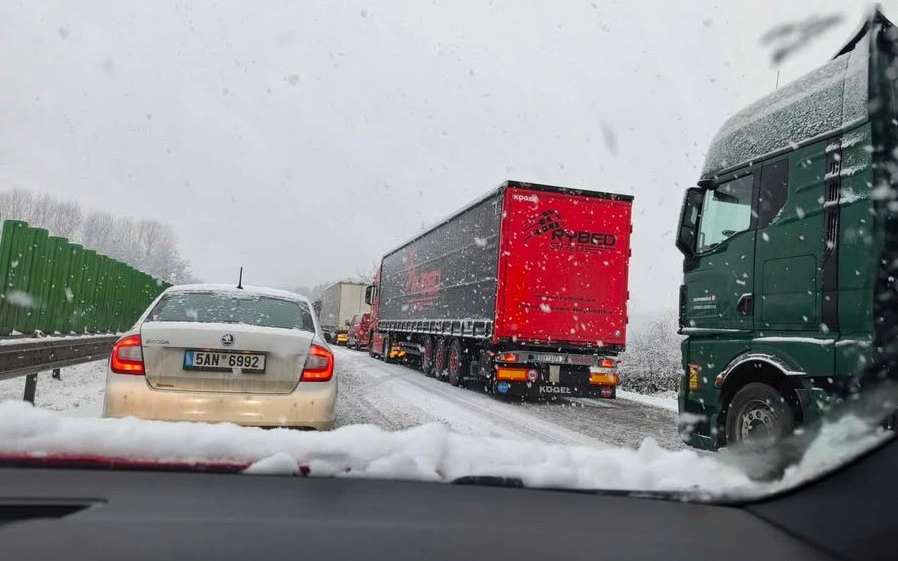 Problém hlásí také dálnice D8 ve směru na Německo, kde havarovaly kamiony.