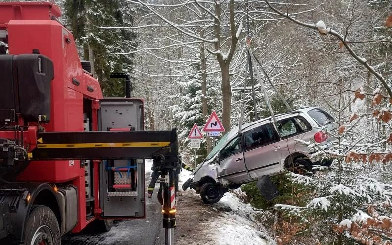 "Řidič pravděpodobně nezvládl řízení na kluzké vozovce a zřítil se se svým vozem ze zhruba 15 metrového srázu. V době příjezdu složek IZS na místo události se ve voze nikdo nenacházel. Aby mohli zasahující hasiči vytáhnout automobil zpět na silnici, povolal velitel zásahu speciální vyprošťovací automobil z CHS Ústí nad Labem. Následným průzkumem nebyl zjištěn významný únik provozních kapalin, k poškození životního prostředí nedošlo," informovali hasiči z Ústeckého kraje na sociálních sítích.