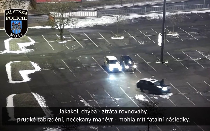 Most – Prázdná parkoviště před obchodními domy lákají k trénování řidičských dovedností začátečníků. A taky k různým dalším neplechám, jak se přesvědčil operátor kamerového systému, když ve večerních hodinách monitoroval parkoviště před nákupním centrem Tesco.