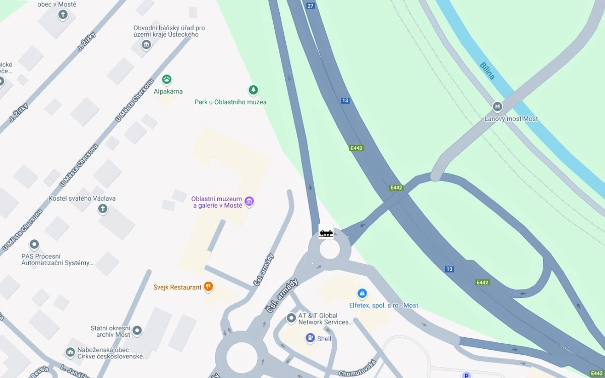 Jde o první kruhový objezd u nájezdu z koridoru I/13 od Litvínova do Mostu. Místo je s opatrností průjezdné, nehoda se obešla bez zranění.