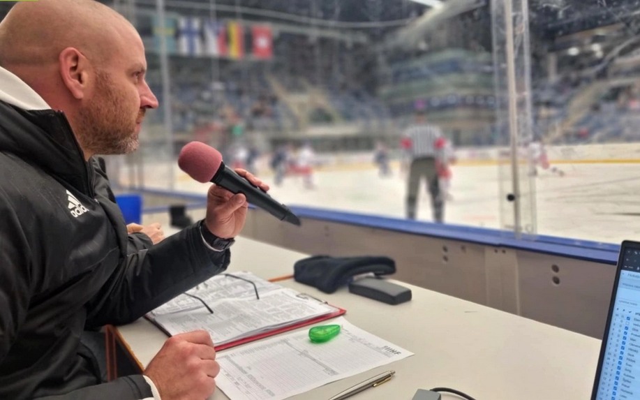 Jako hlasatel komentoval Jan Ptáček první čtyři zápasy Turnaje pěti v Chomutově. Foto: archiv Jana Ptáčka