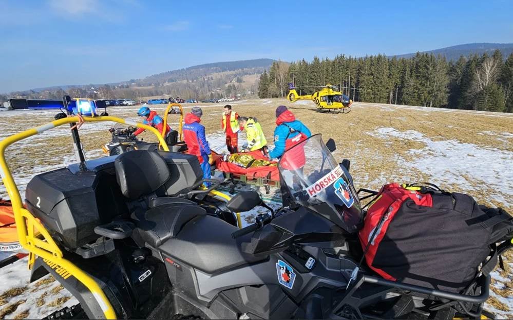 Jeden včerejší krušnohorský dětský skokan putoval do zdravotnického zařízení s poraněnou nohou s posádkou ZZS. Druhý se opravdu proletěl, protože následkem jeho těžkého pádu bylo bezvědomí a do Fakultní nemocnice putoval na palubě vrtulníku AČR (ten zajišťuje leteckou záchranu v Plzeňském kraji). Ošetření tohoto pacienta se s horskými záchranáři účastnili také kolegové z HZS Kraslice.