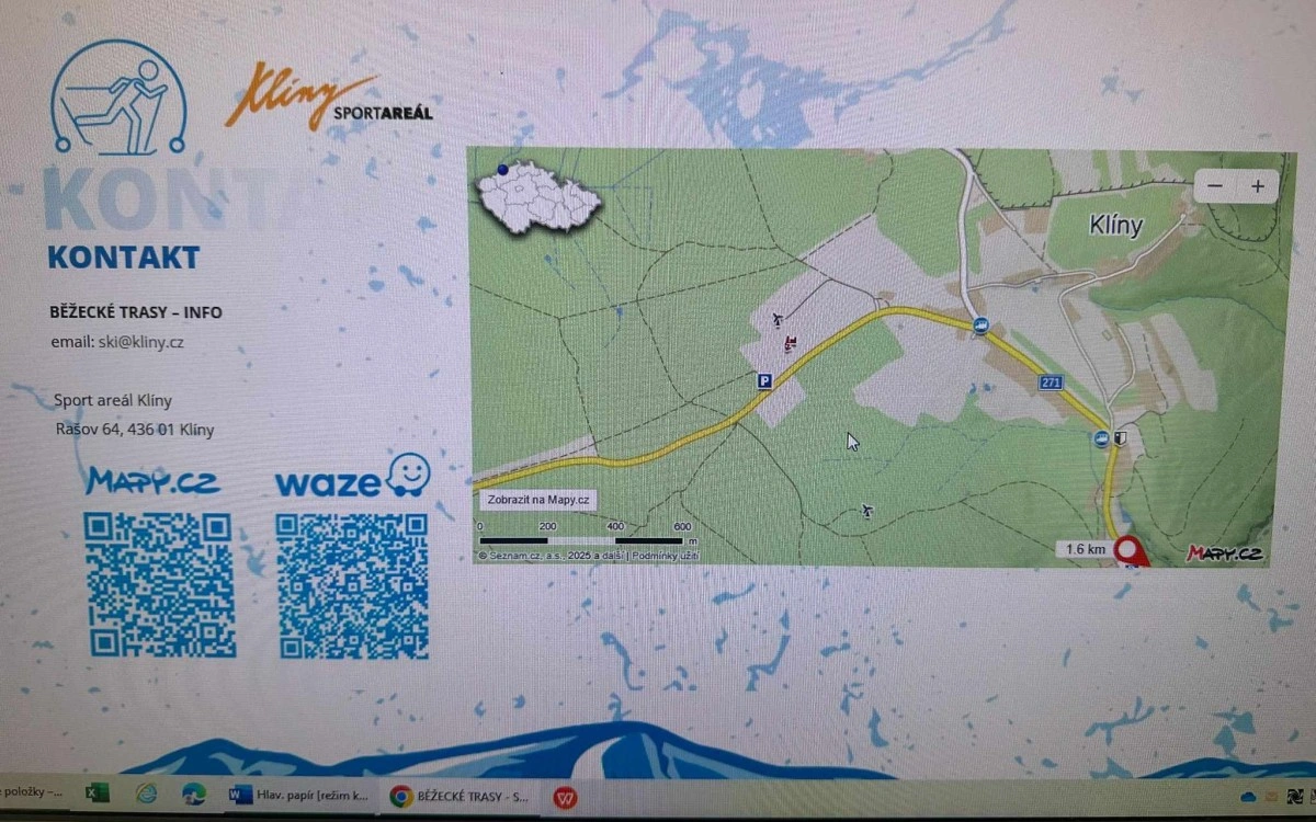 Aktuálně už je na webu mapa nová. Provozovatel sportareálu se ohradil, že mapy netvoří on, ale server Mapy.cz a hned po upozornění byla ikonka odstraněna. Reprofoto: Sportareál Klíny