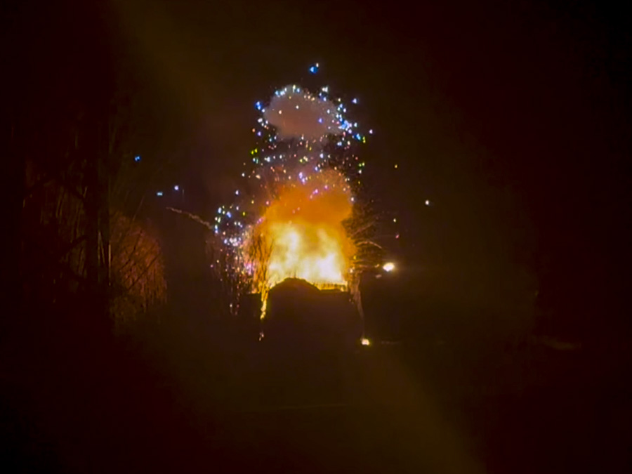 Vozidlo bylo odstavené na asfaltové ploše vzdálené od nejbližších domů. Při příjezdu byl požár již v plném rozsahu. Videozáznam ukazuje také explozi, ke které došlo ještě před příjezdem hasičů. Ráno zůstává na místě ohořelý vrak dodávky.