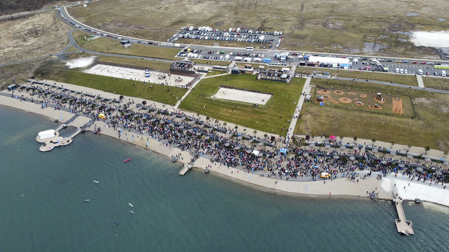 Otužilci se sešli jezera, které má dlouho oblázkovou a písčitou pláž. Množství lidí způsobilo dopravní komplikace, příjezd k jezeru usměrňovali městští policisté. Organizátoři měli na místě zajištěny dvě sanitky a záchranáře na břehu i ve vodě. Vzduch měl čtyři stupně Celsia, voda byla rovněž ledová, naměřeno bylo 3,46 stupně Celsia. Navíc foukal silný ledový vítr.