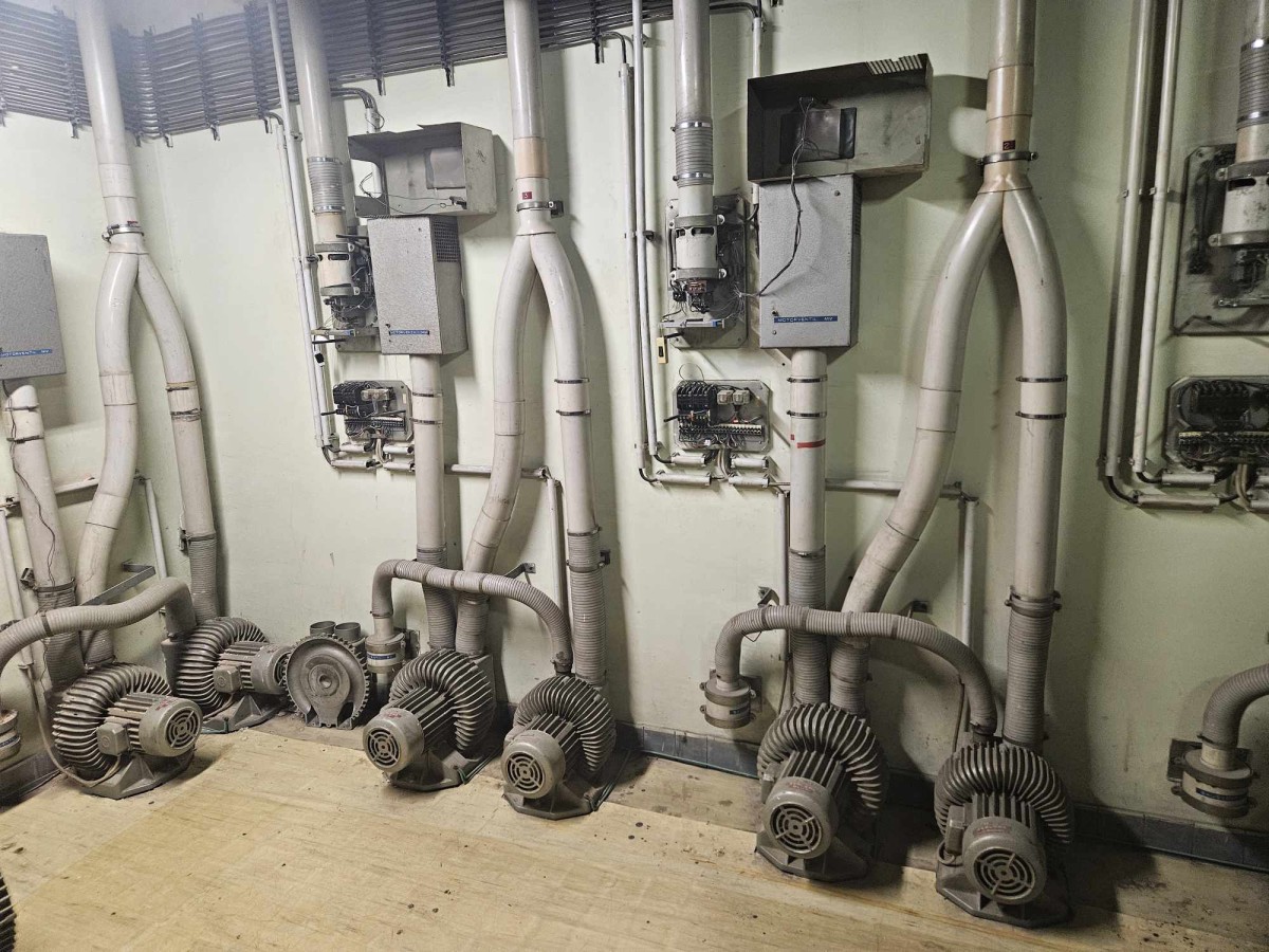Ovšem i místo, kde se ještě funkční stolky Schrack uschovávají, by přilákalo mnoho fanoušků techniky. Stojí totiž ve strojovně, kde je hlavní zařízení na potrubní poštu. Ta na rozdíl například od ústecké nemocnice nyní není funkční, ale chystá se její opětovné zprovoznění. „Tady ve strojovně se sbíhají trasy potrubí, které propojují všechny pavilony nemocnice," uvedla při prohlídce Eva Caklová.