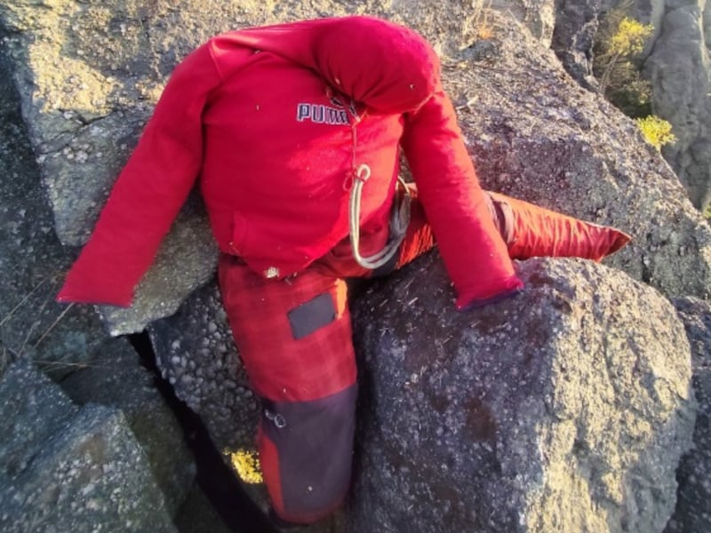 „V pohotovosti tak začali být i hasiči s dronem. Než však k nasazení došlo, jeden z policistů se těžkým terénem k předmětu, připomínajícímu uvízlé tělo, dostal. Naštěstí se nejednalo o osobu, ale figurínu vyrobenou vycpáním oděvů senem, která byla přivázána lanem ke skále. Figurínu policisté z místa odstranili, aby nedocházelo k vystrašení dalších turistů," uvedla policejní mluvčí Ilona Gazdošová.