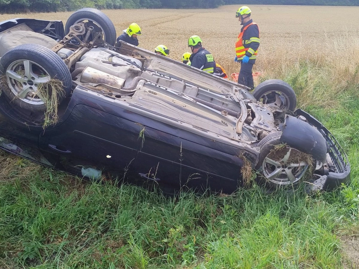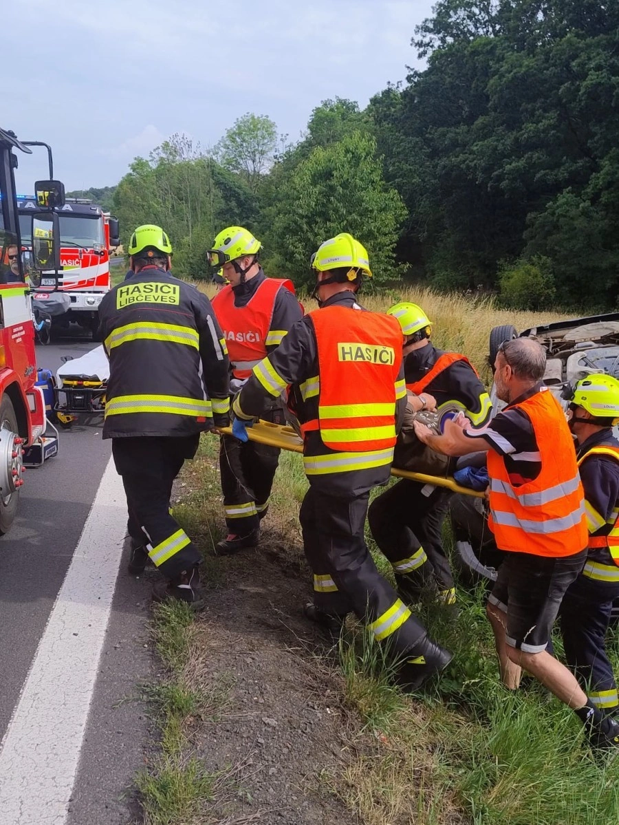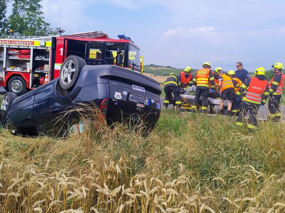 Chrámce – K ranní nehodě osobního vozu, který skončil na střeše, kromě zdravotníků a policistů mířili i hasiči. Ti společně se zdravotníky hasiče vyprostili z vozu.