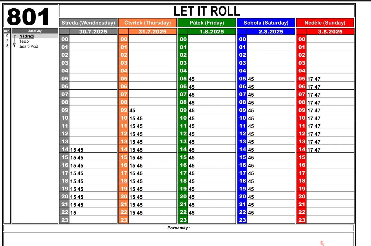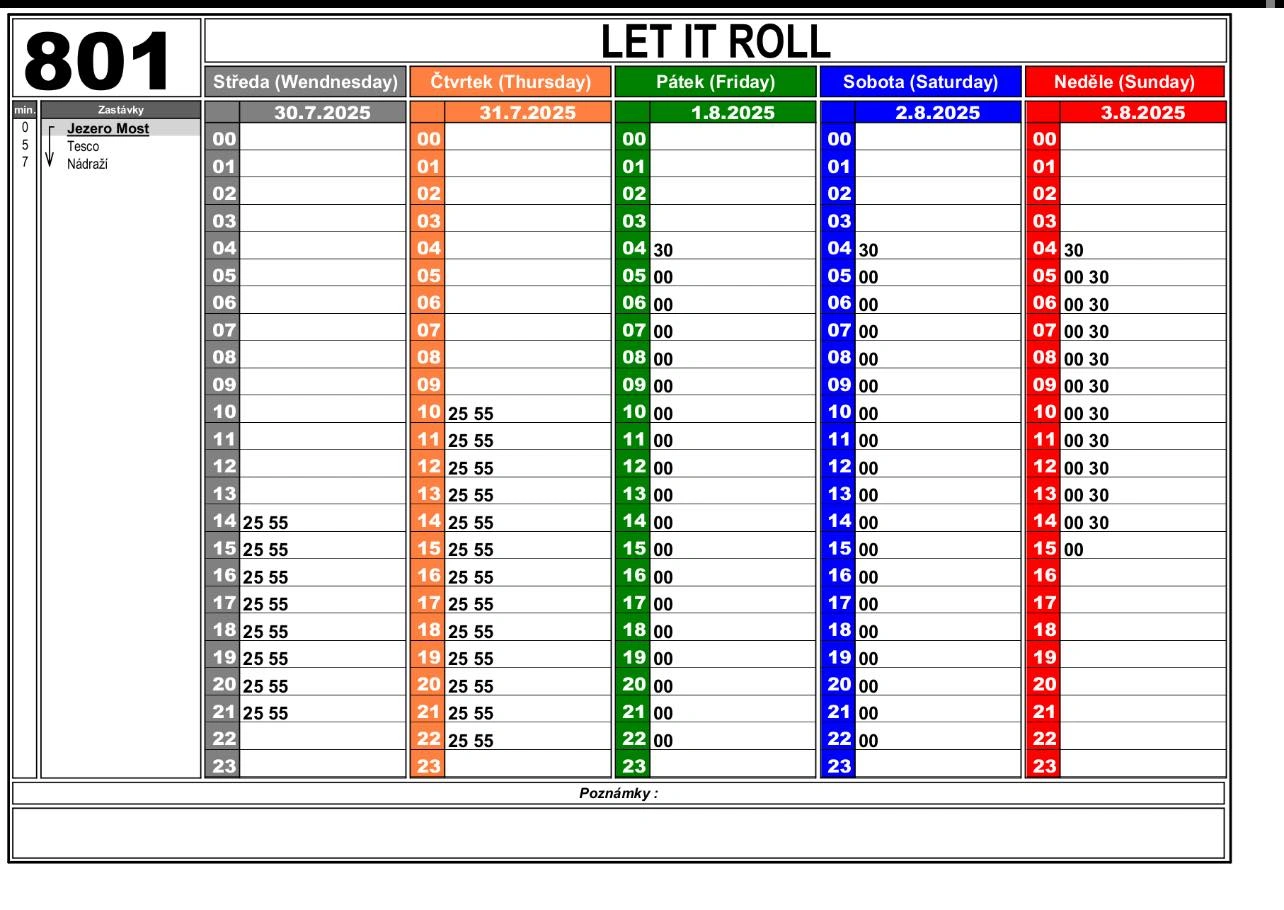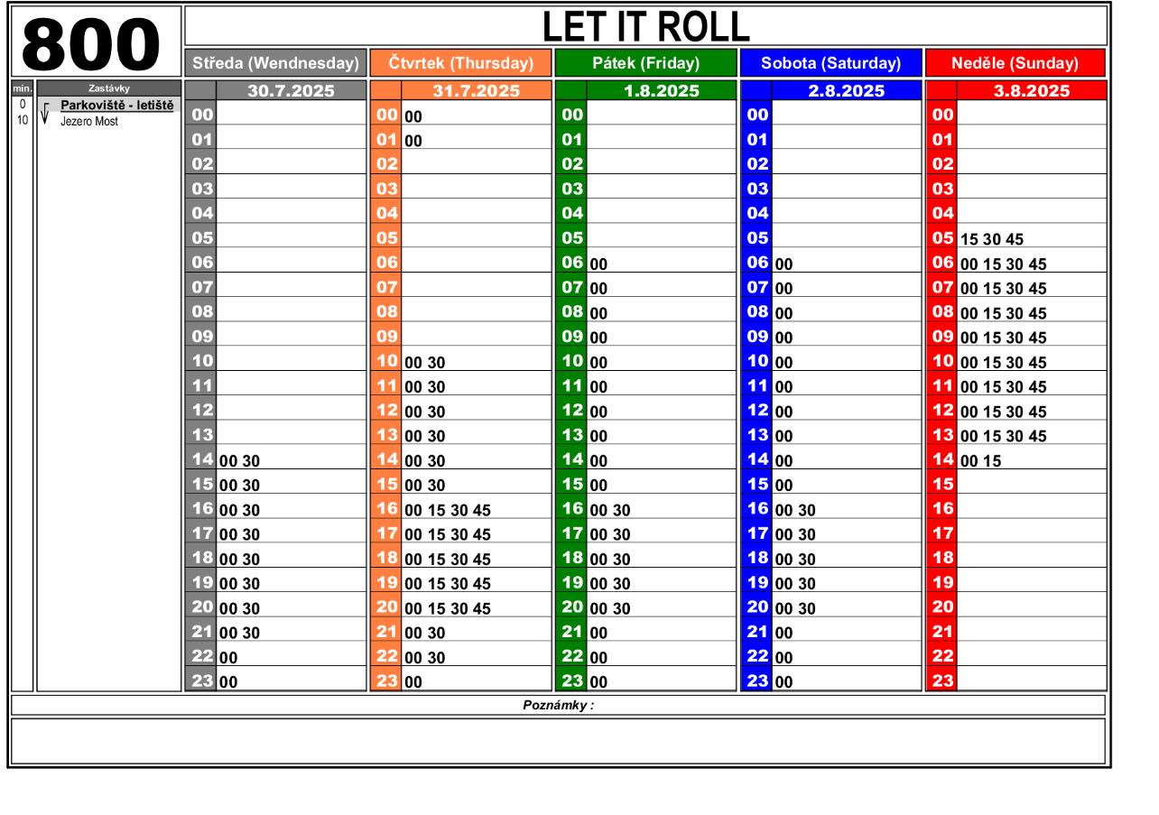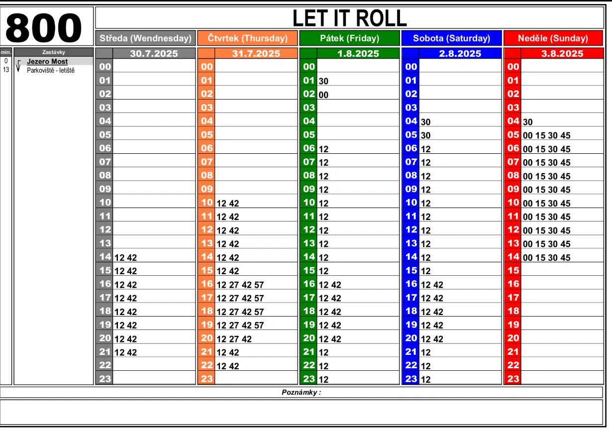„Po dobu konání festivalu, tj. od 30. července do 4. srpna 2025 včetně, nebudou autobusové linky číslo 16 a 30 zajíždět až do zastávky Jezero Most nad hlavní pláží – zastávka bude po uvedenou dobu přemístěna na účelovou komunikaci k okružní křižovatce směr Děkanský kostel," upozorňuje DOPRAVNÍ PODNIK měst Mostu a Litvínova.