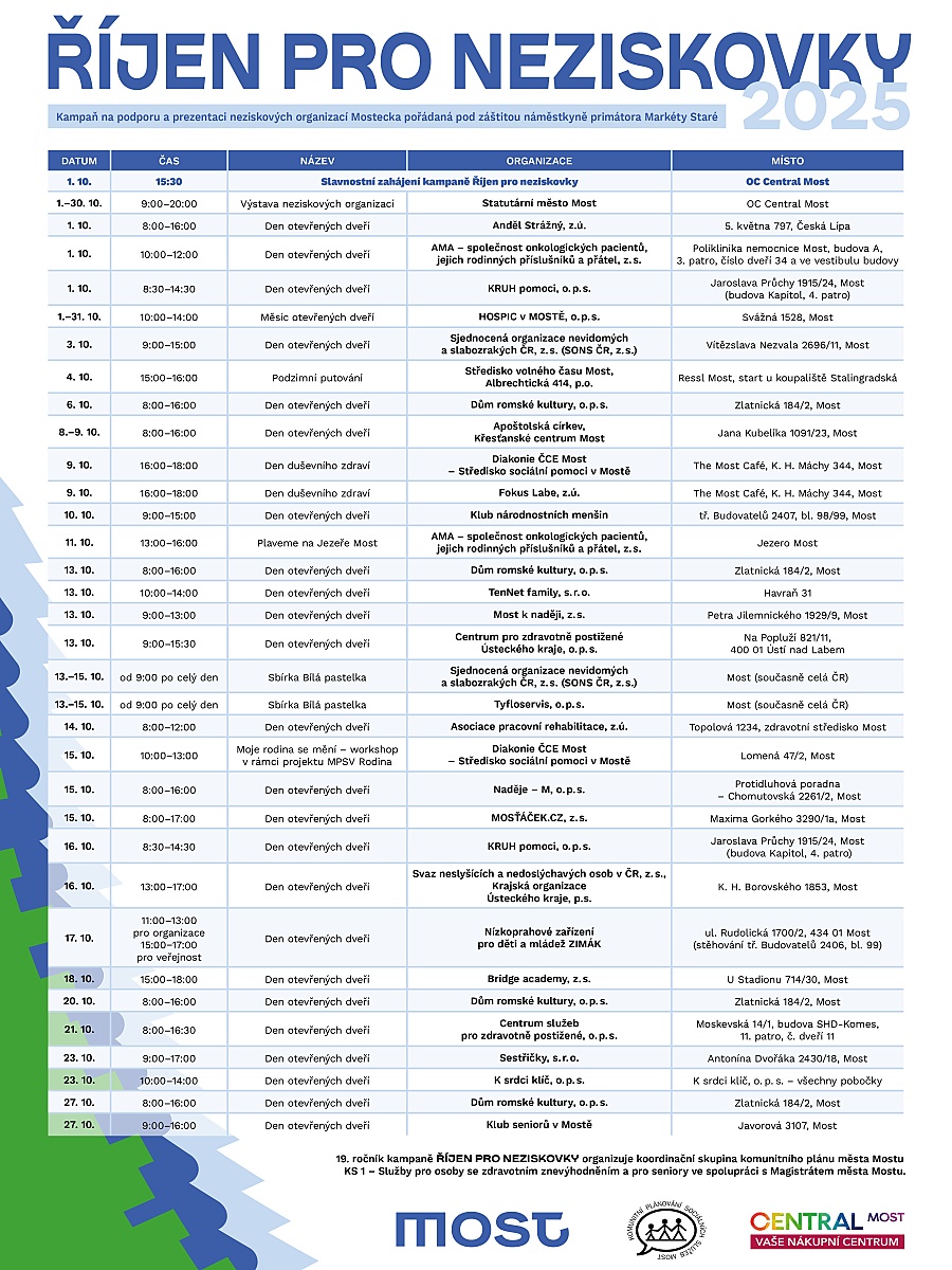 Most – Druhým týdnem pokračuje v obchodním domě Central Most akce Říjen pro neziskovky. Při slavnostním zahájení, tedy 1. října, byly oceněni dobrovolníci a zástupkyně komunitního plánování.