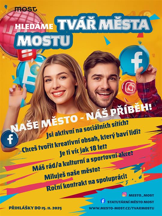 Most – Sníš o tom být influencerem a tvořit obsah, který baví lidi? Teď je tvoje šance! Město Most hledá někoho, kdo s ním bude celý rok spolupracovat a ukáže, jak skvělé je na severu Čech žít a trávit čas. Nová tvář Mostu po dvou letech vystřídá Lucii Pailovou, která byla tváří Mostu od roku 2024.
