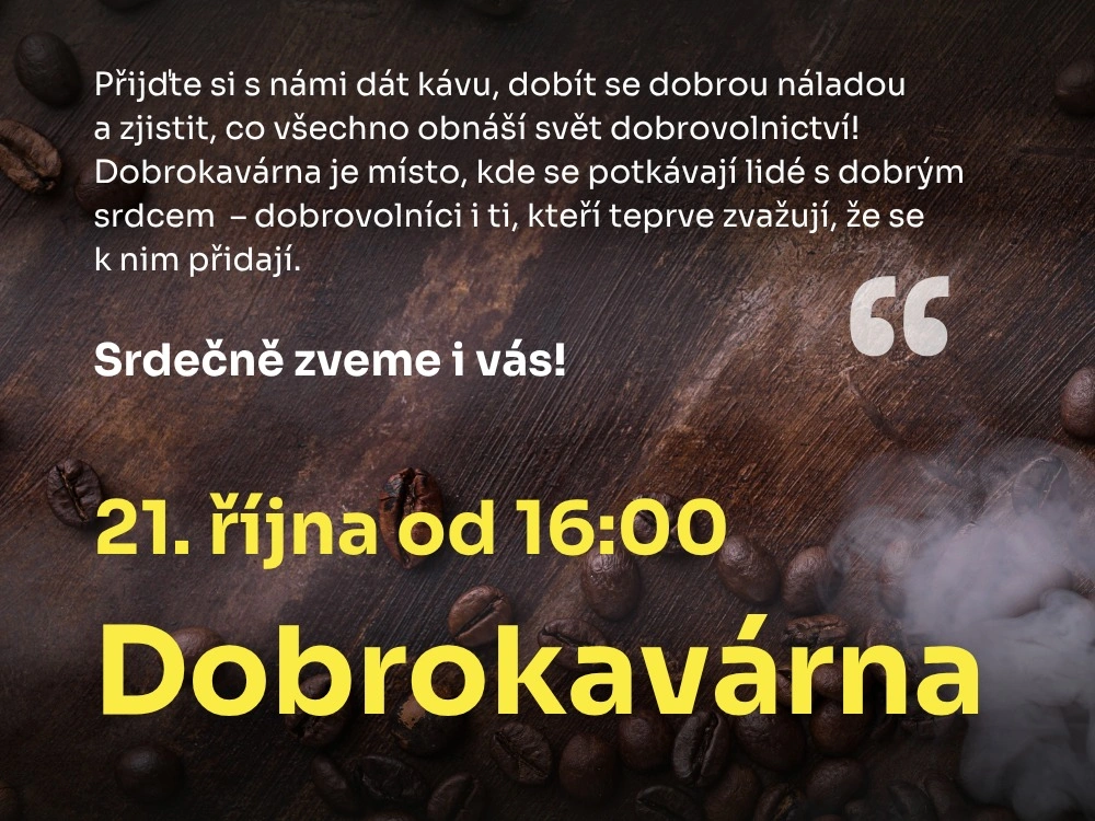 Most – Příjemná atmosféra, vůně kávy a příležitost zjistit, co všechno obnáší svět dobrovolnictví. To vše nabídne Dobrokavárna, která se koná dnes, v úterý 21. října, od 16 hodin v prostorách Diakonie Most v ulici Lomená 47/2.