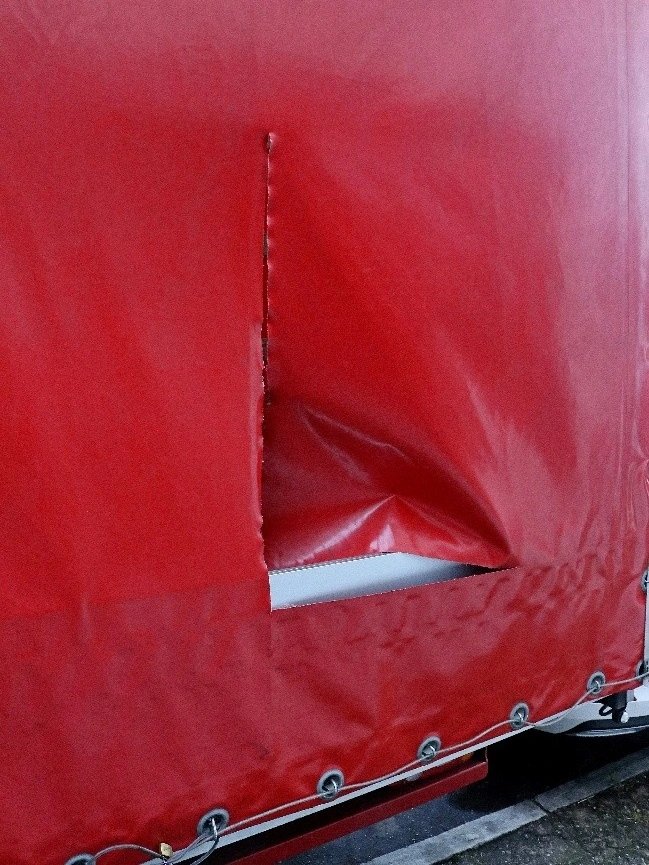 Rudá plachta přitahovala pozornost dvojice zlodějů. Po rozříznutí a zjištění, jaký "poklad" se v útrobách vozu skrývá, se přišli obohatit i další. Foto: Policie ČR