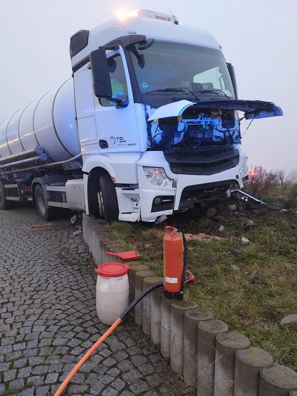 U průmyslové zóny Triangle řidič cisterny skončil s vozidlem přímo v samotném kruhovém objezdu. Na místě nehody zasahuje profesionální hasičská jednotka z Bitozevsi. „Došlo k proražení olejové vany, z které uniklo 15 litrů oleje," řekl mluvčí HZS Ústeckého kraje Milan Rudolf.