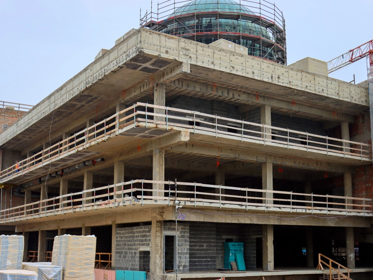 V 1. podzemním podlaží se betonují základy výtahových šachet a pracuje se na hrubých podlahách. Foto: město Most/F. Lipiner
