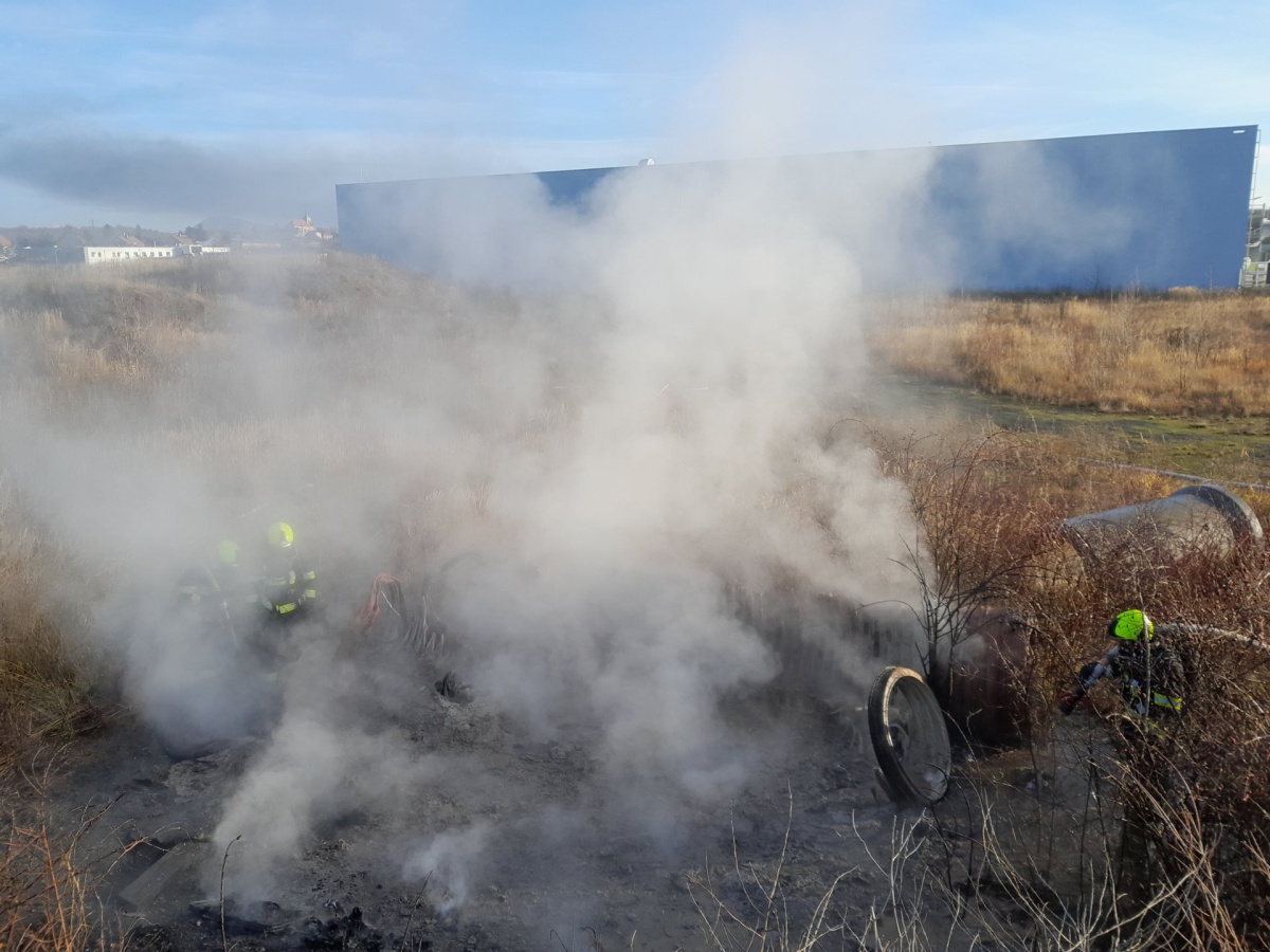 Most – Čtyři hasičské jednotky ve středu krátce před desátou hodinou začaly hasit požár plastových trubek na volném prostranství ve Velebucicích.