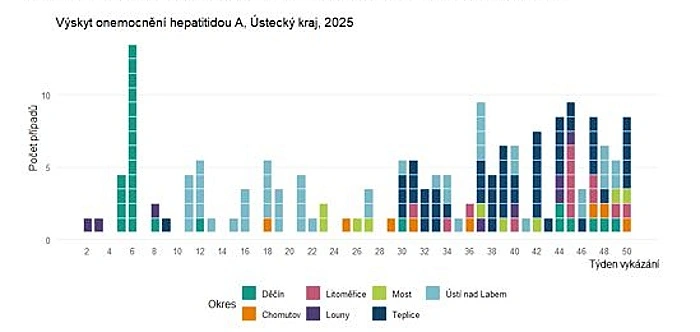 Krajská hygienická stanice Ústeckého kraje zveřejnila data za 50. týden roku 2025, která ukazují, že epidemie v regionu neustupuje, ba naopak. Jen v tomto týdnu bylo zjištěno 8 nových případů, což je o tři více než v týdnu předchozím.