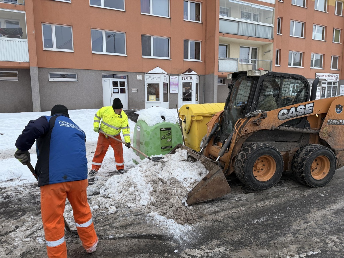 Technické služby proto nasadily techniku i pracovníky, kteří sníh od kontejnerů odstraňují. „Ten nakládáme na kontejnery a následně odvážíme do areálu technických služeb v Zahradní ulici,“ popsali postup čištění města pracovníci služeb. Cílem je zajistit, aby se popelářské vozy k nádobám vůbec dostaly.