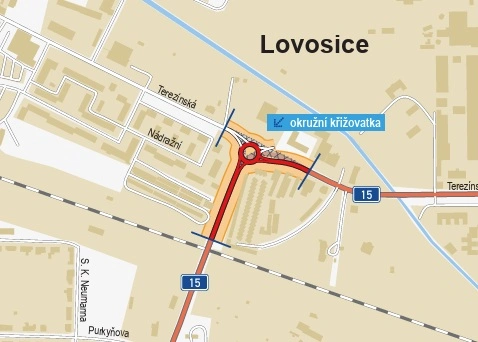 Druhý projekt se týká Lovosic, konkrétně křižovatky silnice I/15 s ulicí Terezínská. Tato křižovatka, nacházející se v pravém oblouku na příjezdu od mostu, představuje v současné podobě bezpečnostní riziko. Ředitelství silnic a dálnic proto 22. ledna 2026 zahájilo výběrové řízení na zhotovitele stavby nové okružní křižovatky. Předpokládaná cena této investice činí 31 milionů korun bez DPH.