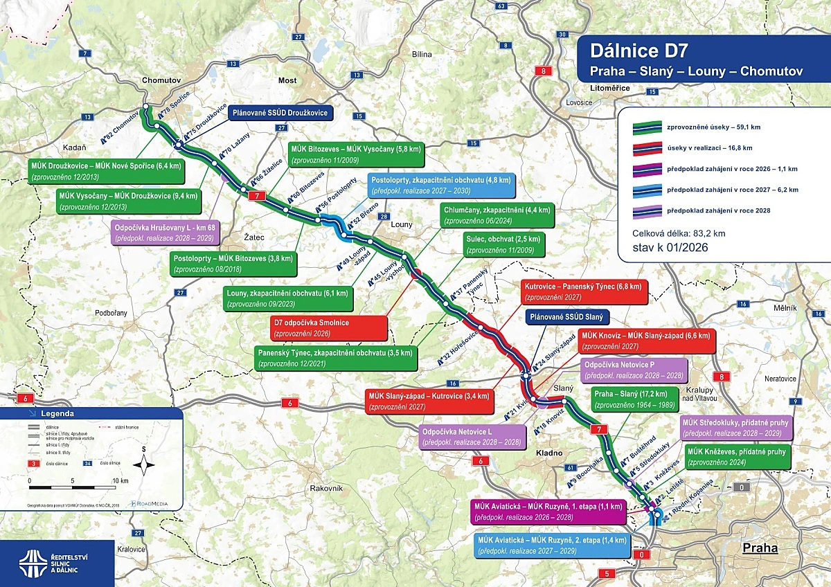Lounsko – Ředitelství silnic a dálnic (ŘSD) zintenzivňuje přípravy na dostavbu jednoho z posledních chybějících článků dálnice D7 na severu Čech. Téměř pětikilometrový úsek u Postoloprt, který je zásadní pro plynulé spojení mezi Prahou a Chomutovem, by se měl začít stavět v roce 2027. Odhadované náklady na tuto náročnou přestavbu přesahují tři miliardy korun.