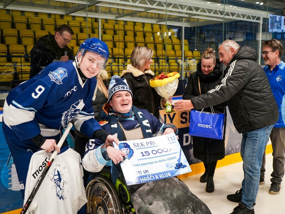 Most – Hokej v Mostě včera nebyl jen o gólech a bodech. Domácí utkání klubu MOSTEČTÍ LVI přineslo silný moment, který připomněl, že sport dokáže spojovat a pomáhat tam, kde je to nejvíce potřeba. Mostečtí hokejisté se rozhodli podpořit svého pravidelného návštěvníka a srdcaře, Petra Charouzka z Bečova.