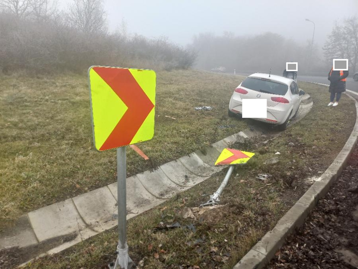 Most – Policisté od ranních hodin řeší kuriozní nehodu osobního vozu, který zůstal zaklíněný v odvodňovací stroze lemující kruhový objezd pod Hněvínem u Matyldy na silnici I/13 z Chomutova do Mostu. Najel na něj řidič jedoucí ve směru od Chomutova.