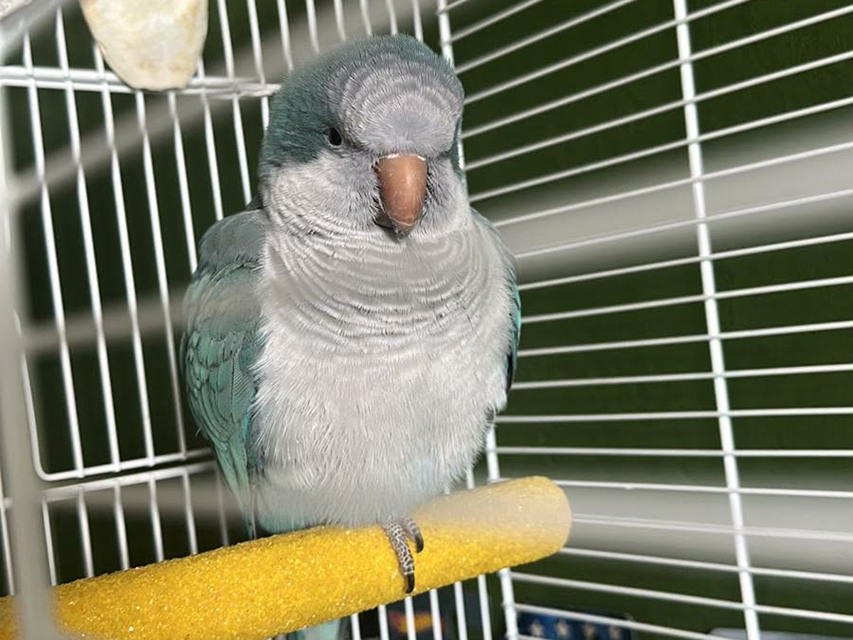 Ukázalo se, že jde o mladého mníška šedého jménem Habibi, který své majitelce uletěl loni na podzim. Pyšní se krásným modrým zbarvením.