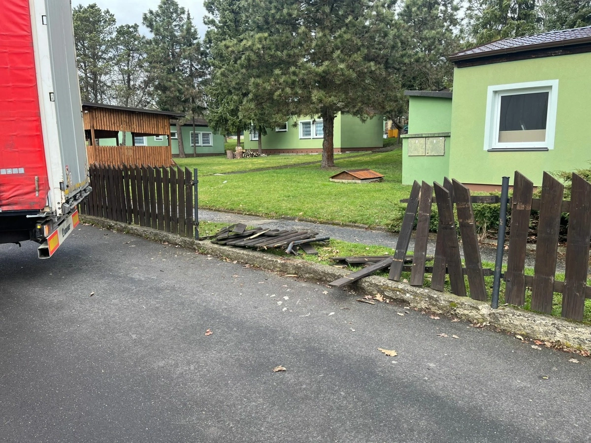 Záznam z kamerového systému v areálu Benedikt zachytil řidiče kamionu cizí národnosti, který s vozem vjel až k místní restauraci. Ignoroval přitom jasnou zákazovou značku a při pokusu o manévr v těsném prostoru pobořil oplocení.