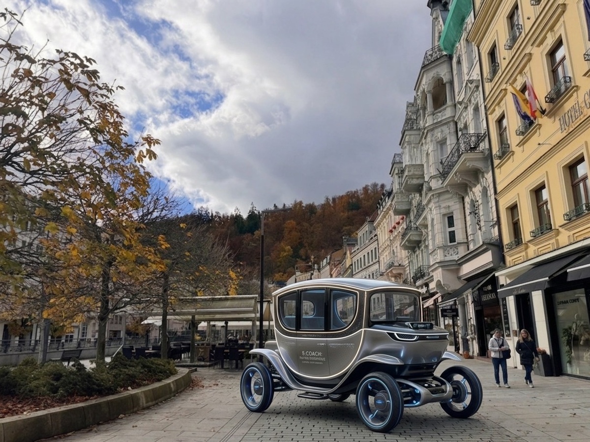 A Karlovy Vary? Tam jsme představili autonomní elektrické lázeňské kočárky, které by nahradily klasické koňské povozy v Karlovy Vary. Inspirací byla kombinace moderních technologií a lázeňské tradice, doplněná o představu plně samořízených vozítek v historickém centru.