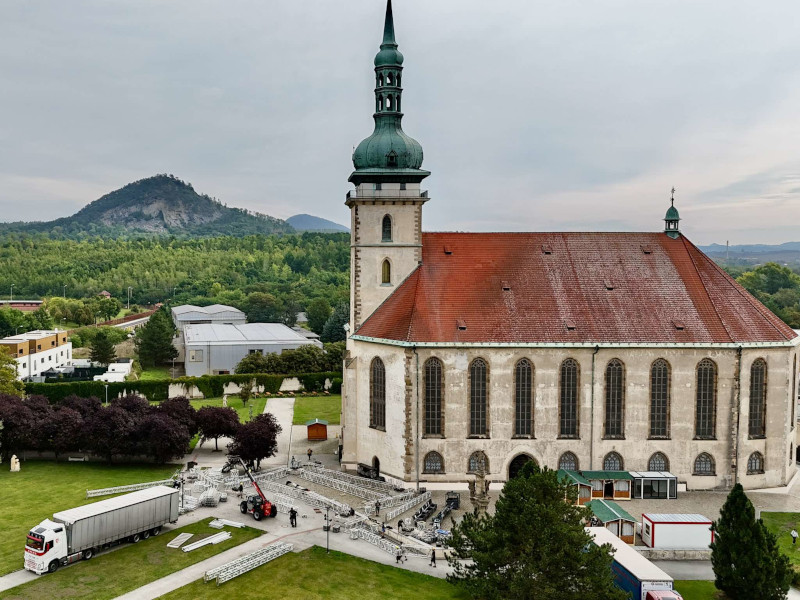 Most - Přípravy na Mosteckou slavnost jsou v plném proudu. Na místě probíhají stavební práce, kvůli kterým už je omezen také příjezd ke kostelu.
