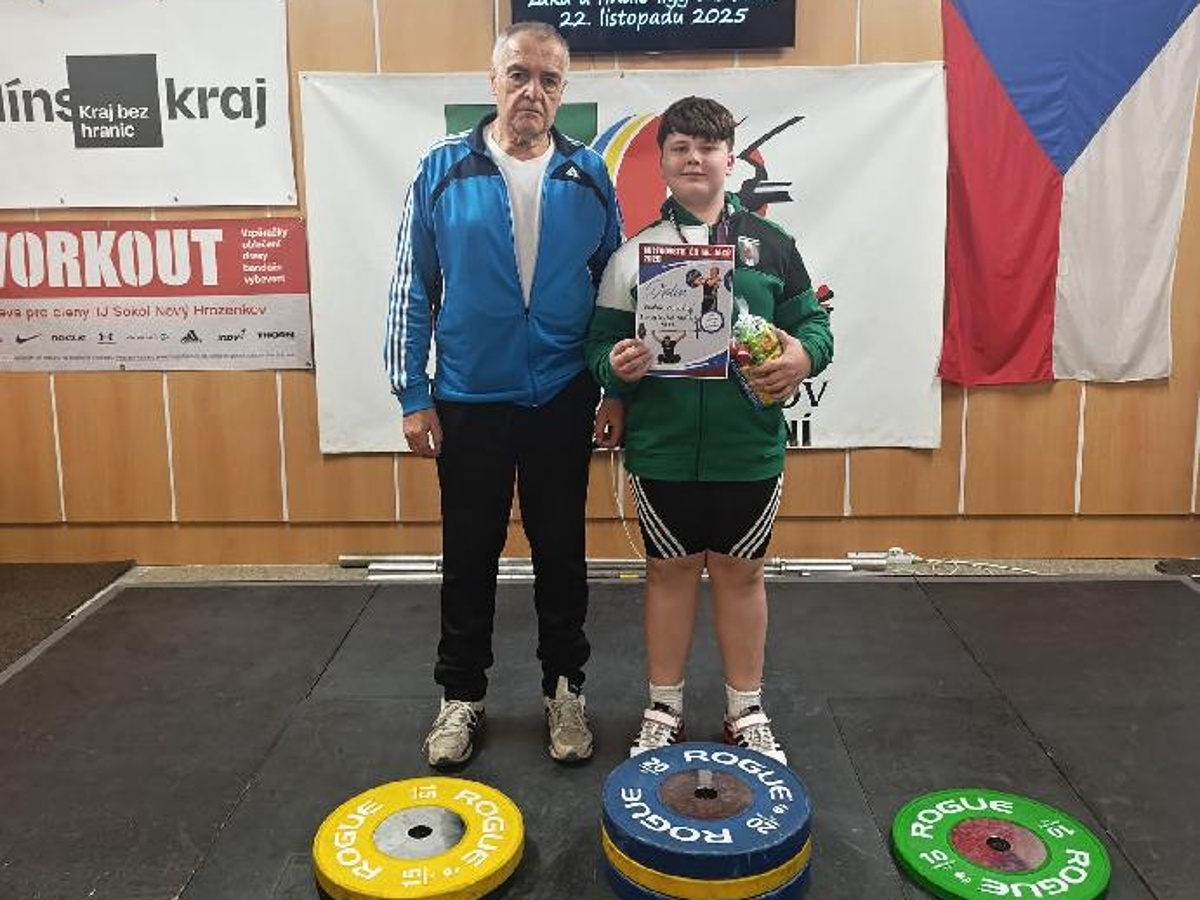 Meziboří – Obrovskou radost udělal svým trenérům i fanouškům mladý vzpěrač Vašek Novotný. Z Mistrovství České republiky mladších žáků, které se konalo v pátek 21. listopadu 2025 v Novém Hrozenkově, přivezl do Meziboří zlatou medaili a mistrovský titul.