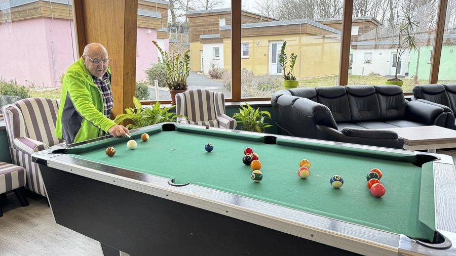 Že je zde skutečně skvělá parta lidí, je zřejmé už při pohledu do společenské budovy. Dámy se zde schází na kávu a debatují při pletení. Na sedačce si užívá příjemné odpoledne i paní Ducháčková, která zde žije už 9 let a také zde oslavila před pár roky devadesáté narozeniny. V rozhlehlé prosluněné místnosti je i kulečník a fotbálek. „Ten obklopí hlavně vnoučata, když přijdou na návštěvu,“ dodává Valentina Václavková. Že zde chce bydlet, prý věděla hned po prvních deseti minutách, co si areál prohlížela. „Doufám, že to je už moje poslední štace,“ dodává spokojeně. Výhodou podle seniorů, kteří zde žijí, je i možnost krátkodobého ubytování pro návštěvy, protože seniorpark nabízí i hotelové služby.