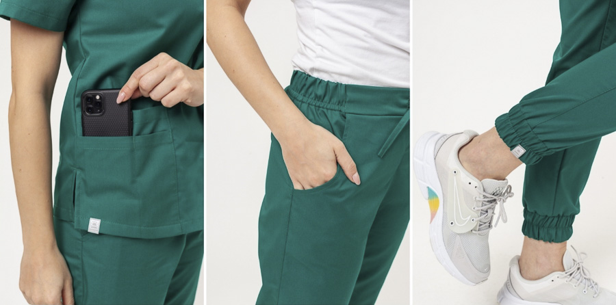 Odolné a pohodlné materiály (kombinace polyesteru a bavlny v poměru 65-35 %), výrazné prošívání, syté barvy, různé střihy - každý z našich návrhů je nejlepším potvrzením toho, že profesionalita v medicíně může jít ruku v ruce s vyjádřením vlastní individuality a péčí o každodenní pohodlí. A koneckonců takové pohodlí není jen otázkou osobního pohodlí, ale také efektivnější práce.